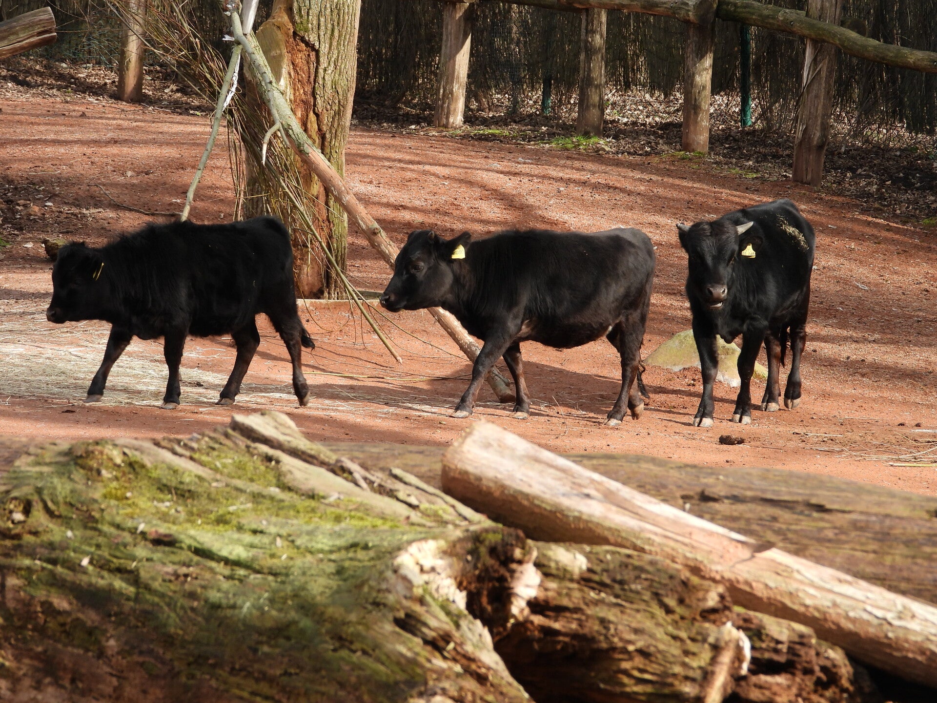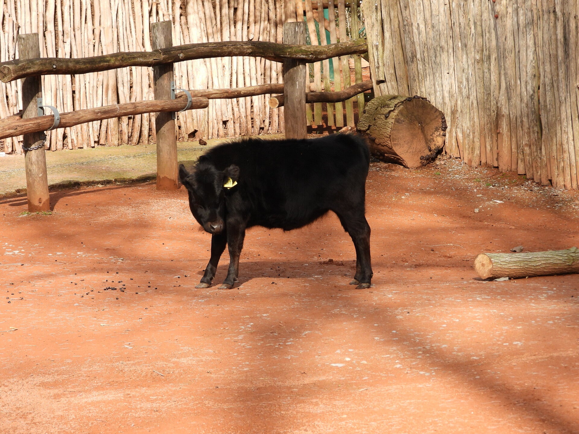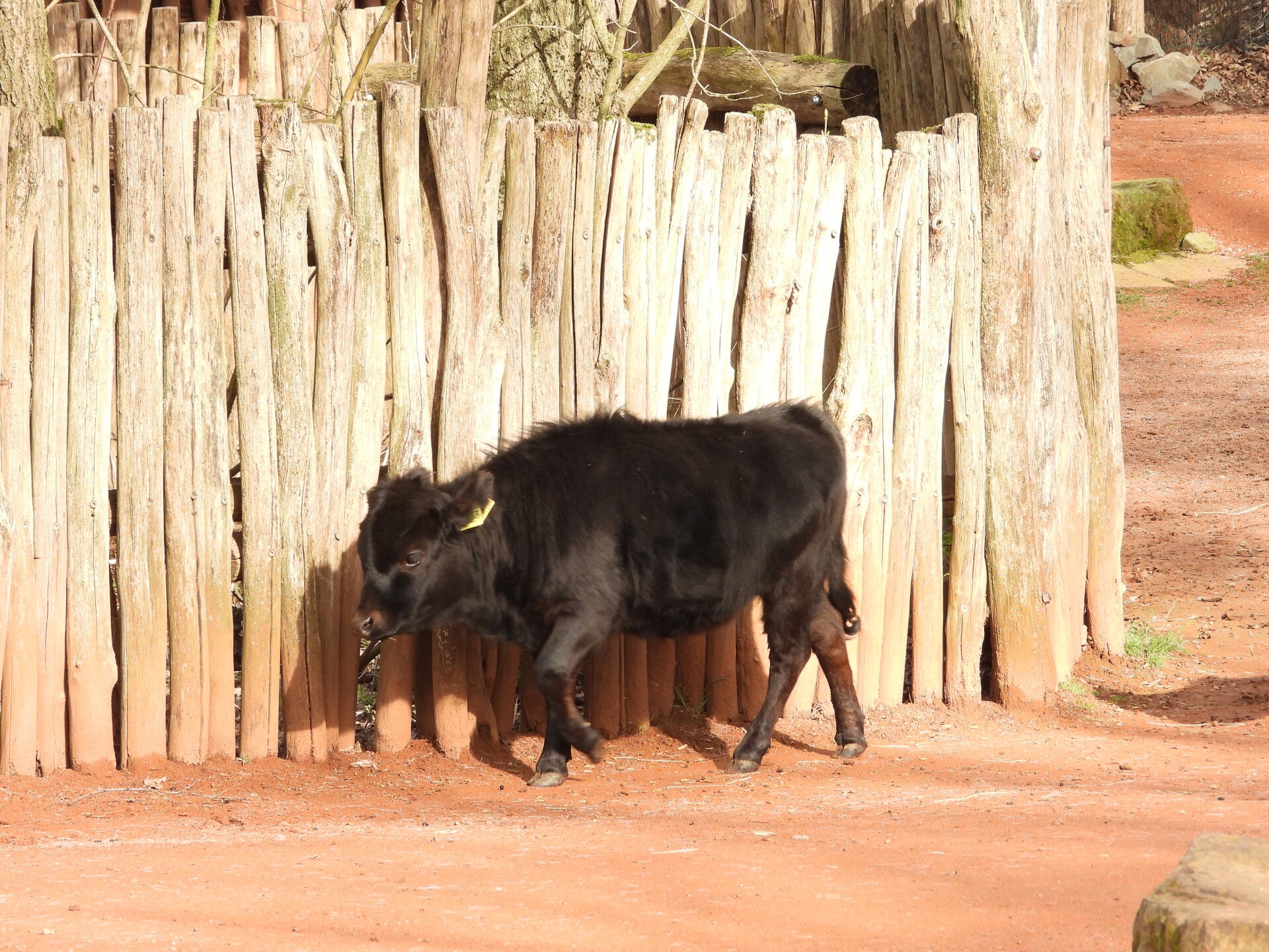 Seit dem 12.03.2026 ist eine neue Tierart zu den Somalischafen gekommen: Dahomey-Zwergrinder. Sie sind erheblich kleiner als die früheren Watussirinder. Das Fell ist grau oder schwarz. Sie wirken flauschig und sind schon richtig munter unterwegs. Ihre Namen: das Männchen - das größte Rind - heißt Knox, das größere Weibchen Leyla, und die kleinste Dame heißt Blinky. Ich finde sie richtig süß!