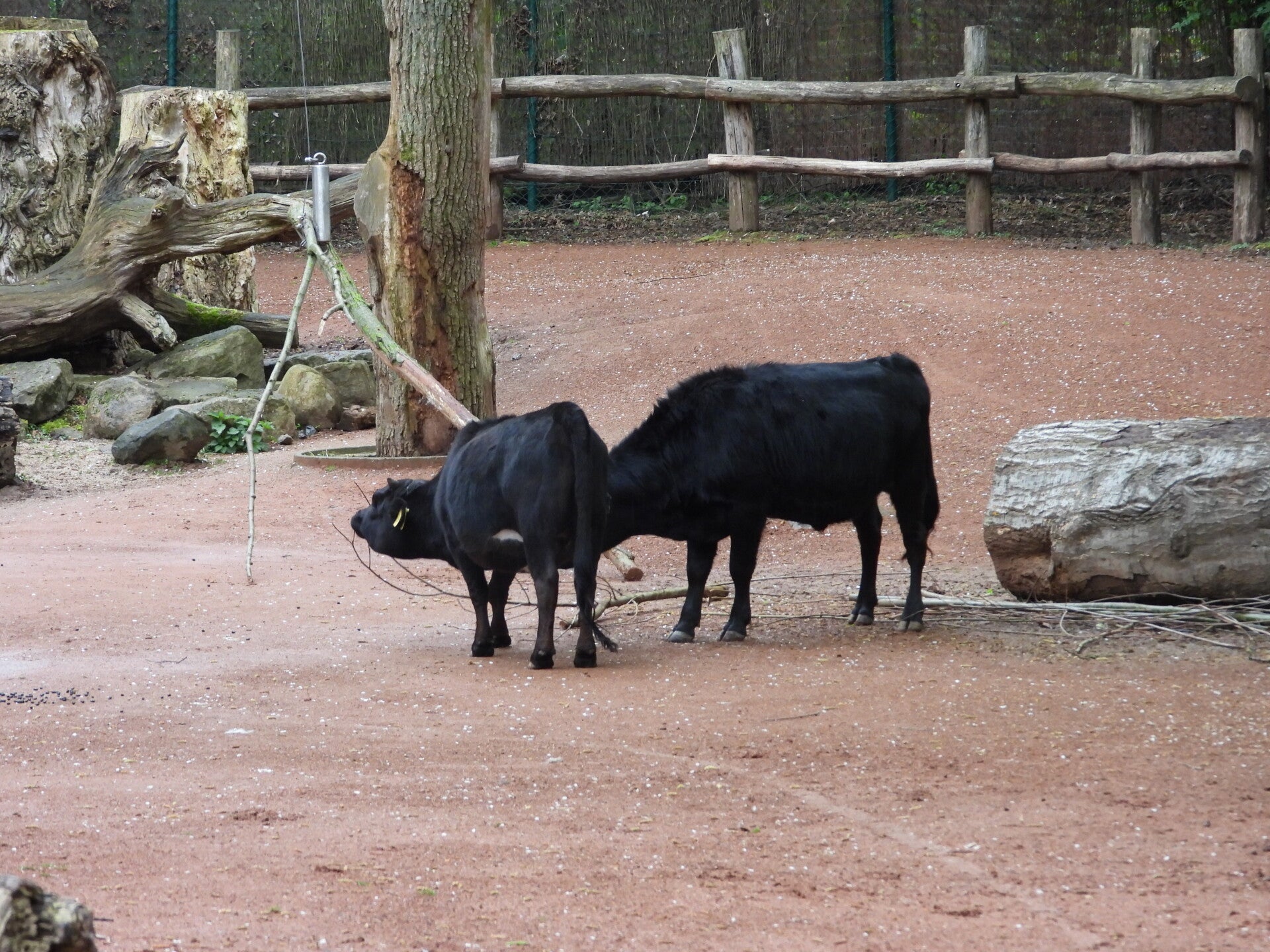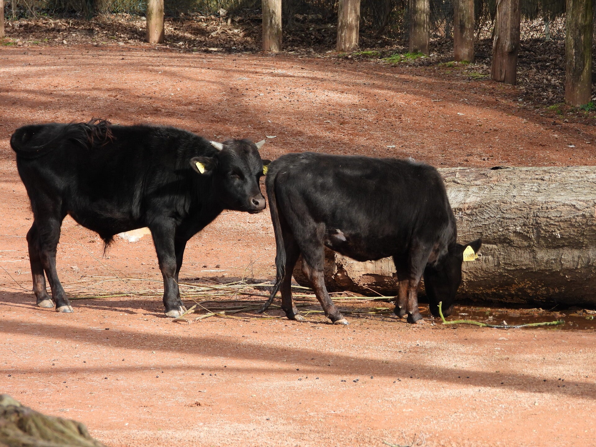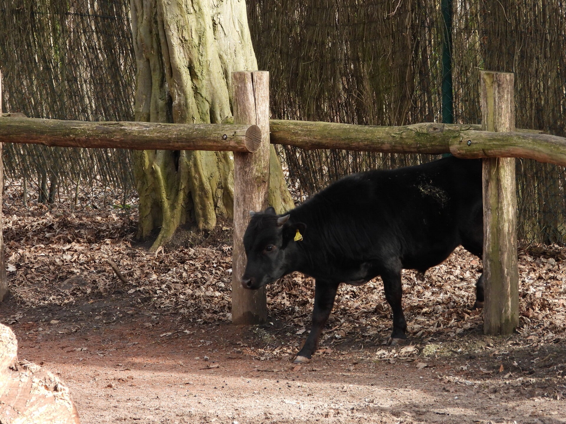 Seit dem 12.03.2026 ist eine neue Tierart zu den Somalischafen gekommen: Dahomey-Zwergrinder. Sie sind erheblich kleiner als die früheren Watussirinder. Das Fell ist grau oder schwarz. Sie wirken flauschig und sind schon richtig munter unterwegs. Ihre Namen: das Männchen - das größte Rind - heißt Knox, das größere Weibchen Leyla, und die kleinste Dame heißt Blinky. Ich finde sie richtig süß!