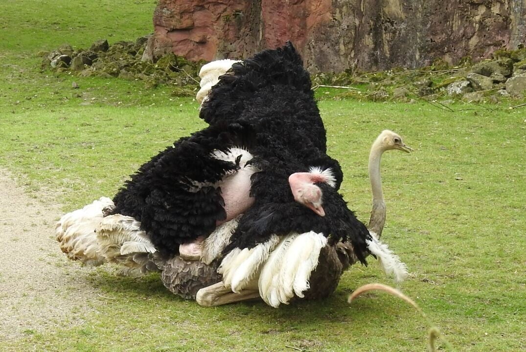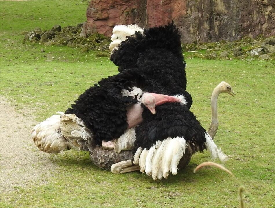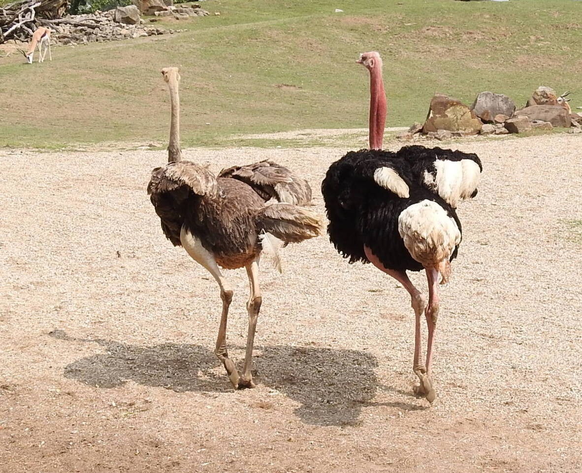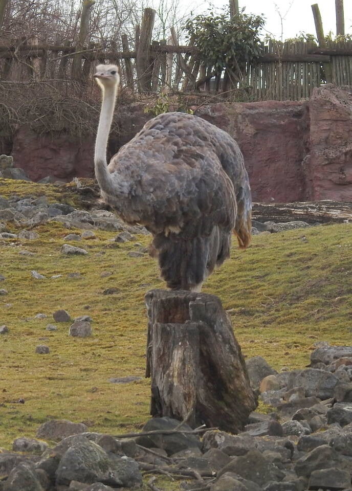 Die beiden Rothalsstrauße heißen Gisela und Siggi. Jungtiere hat es auch schon gegeben.