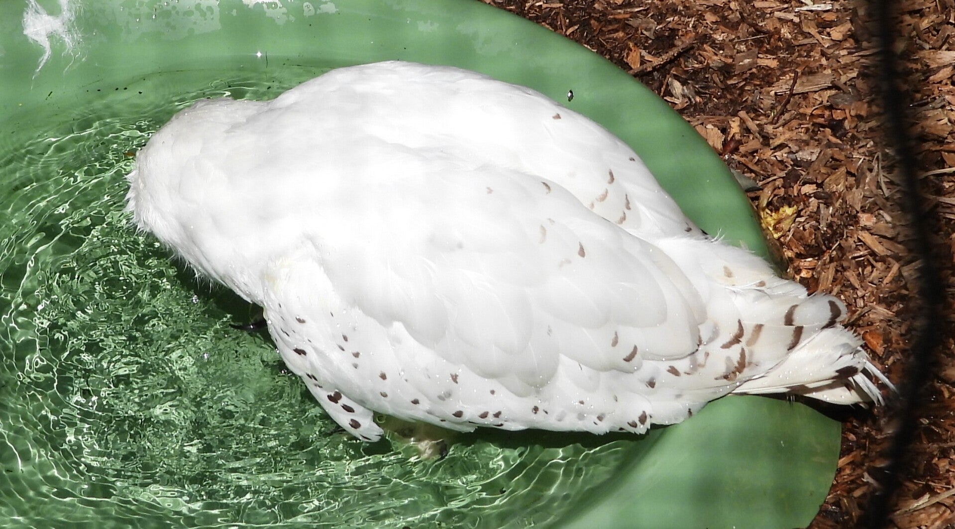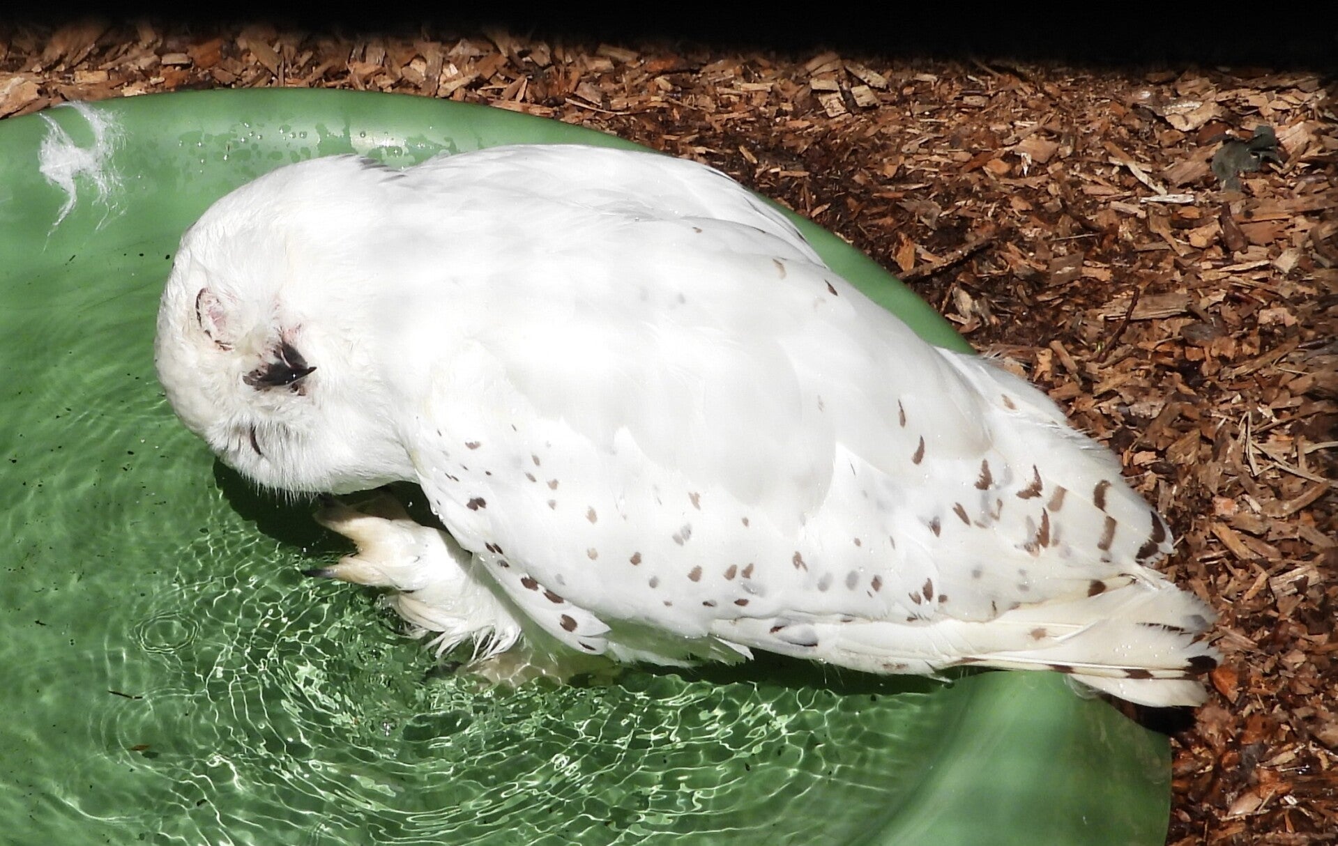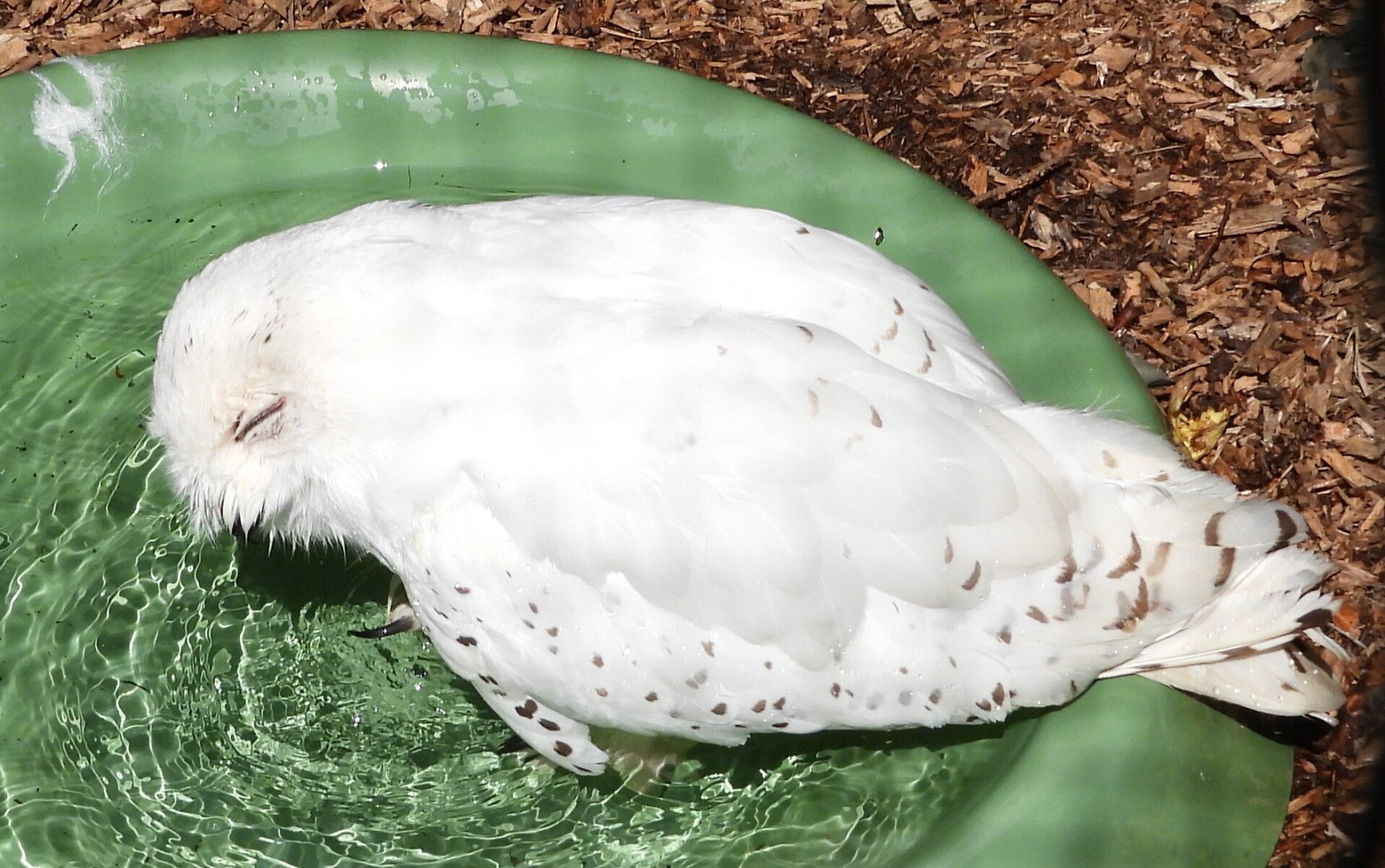Unsere beiden Schneeulen heißen Henriette und Hermann. Mit dem Nachwuchs hat es trotz eifrigen Brühens seitens Henriette noch nicht geklappt. Vielleicht muss sich Hermann etwas mehr Mühe geben.....