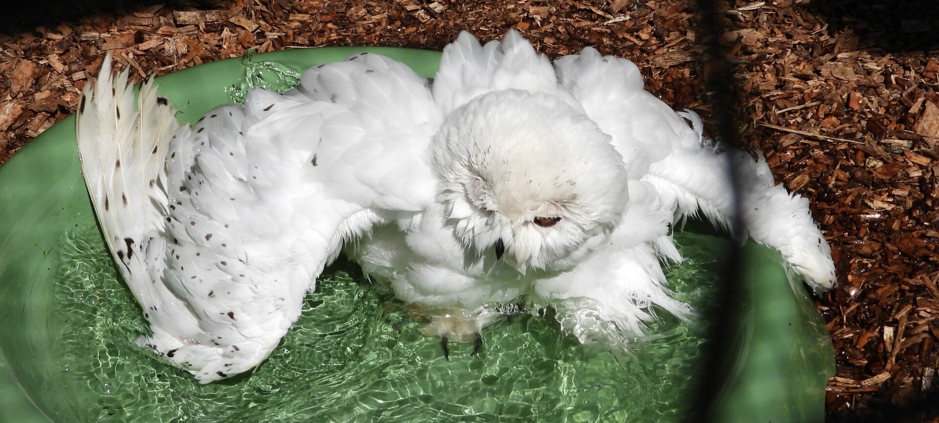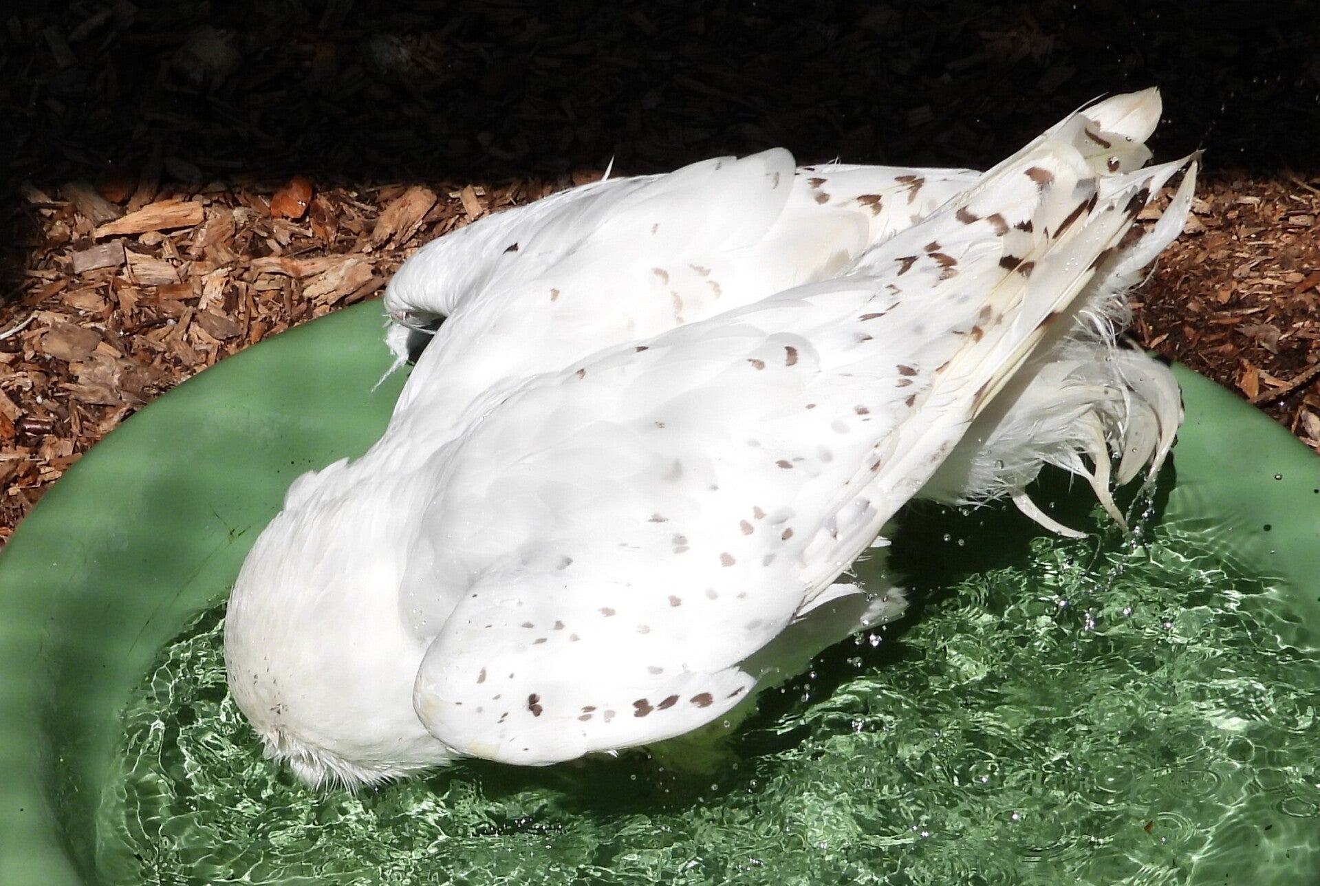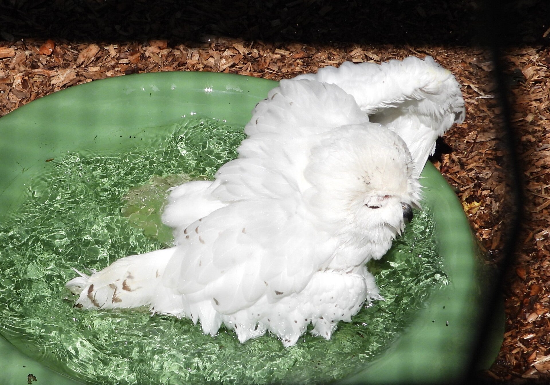 Unsere beiden Schneeulen heißen Henriette und Hermann. Mit dem Nachwuchs hat es trotz eifrigen Brühens seitens Henriette noch nicht geklappt. Vielleicht muss sich Hermann etwas mehr Mühe geben.....