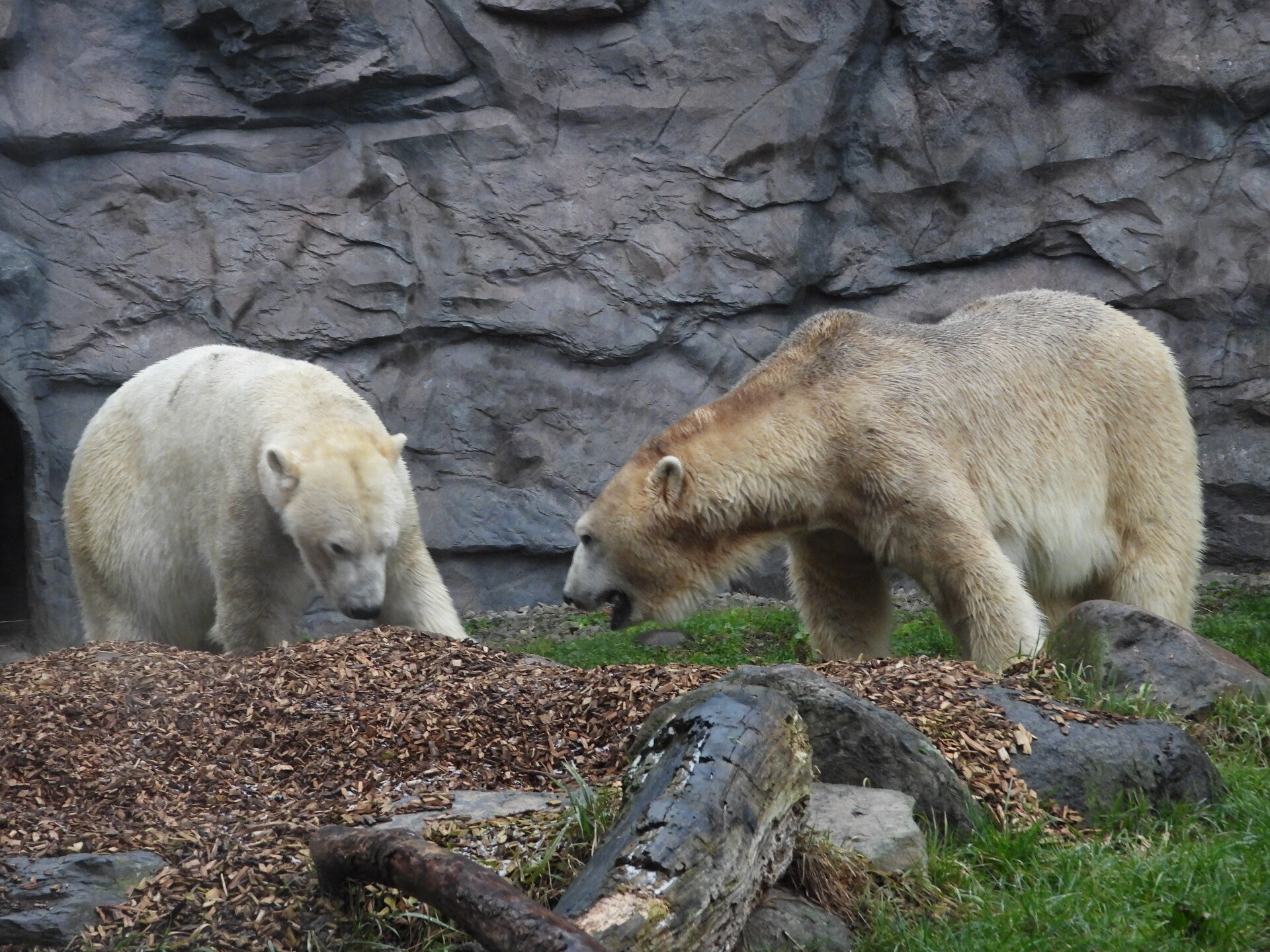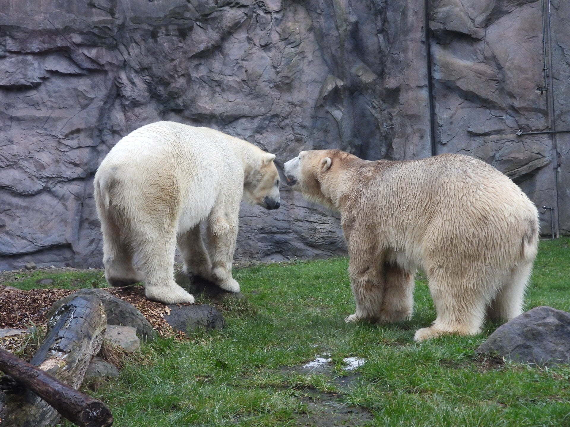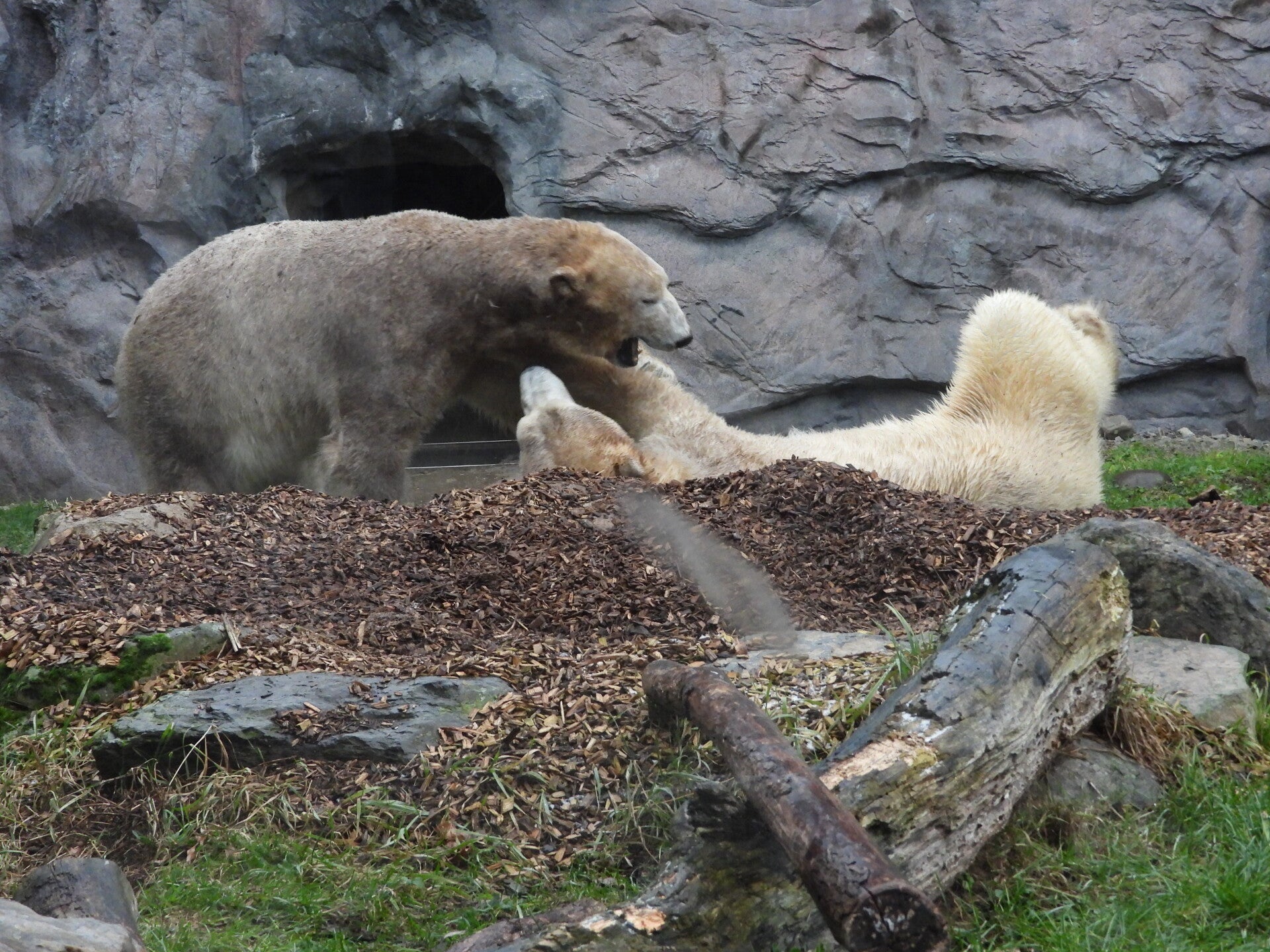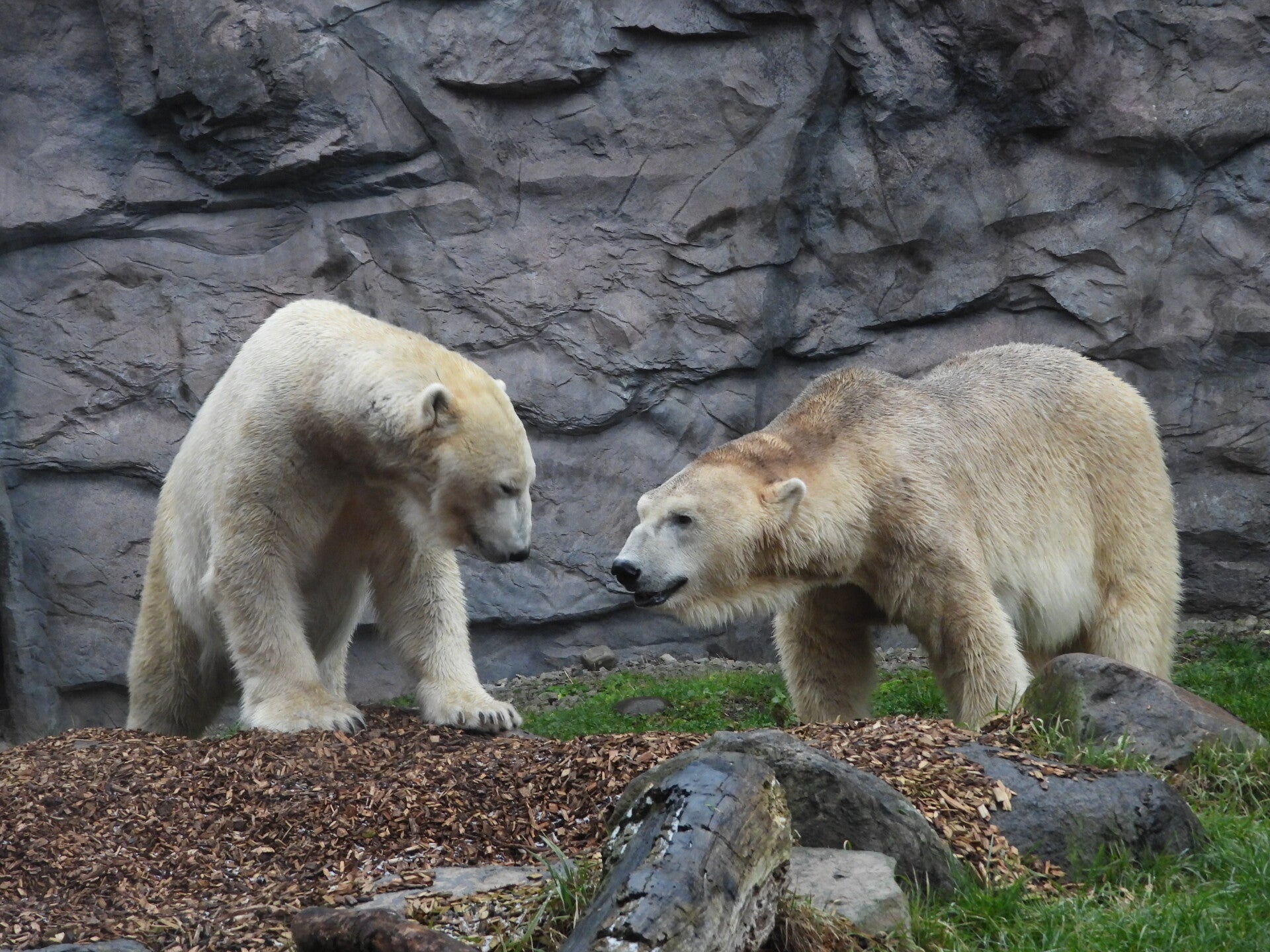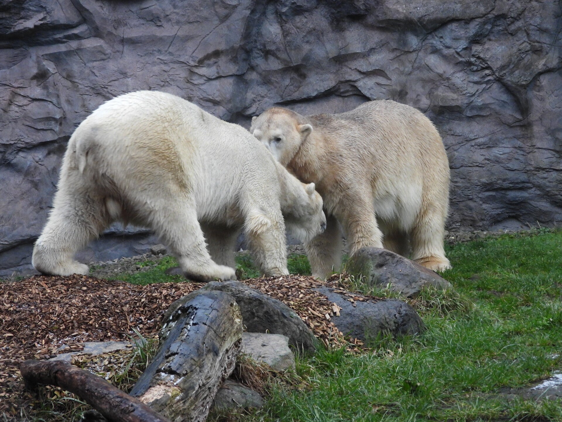 Bill und Nanuq sind nun seit einiger zusammen und benutzen alle drei Anlagen. Sie verstehen sich sehr gut. Mal spielen sie zusammen, aber sie nehmen sich Zeit, sich zurück zu ziehen. Bei der großen Fläche ist das wunderbar möglich.