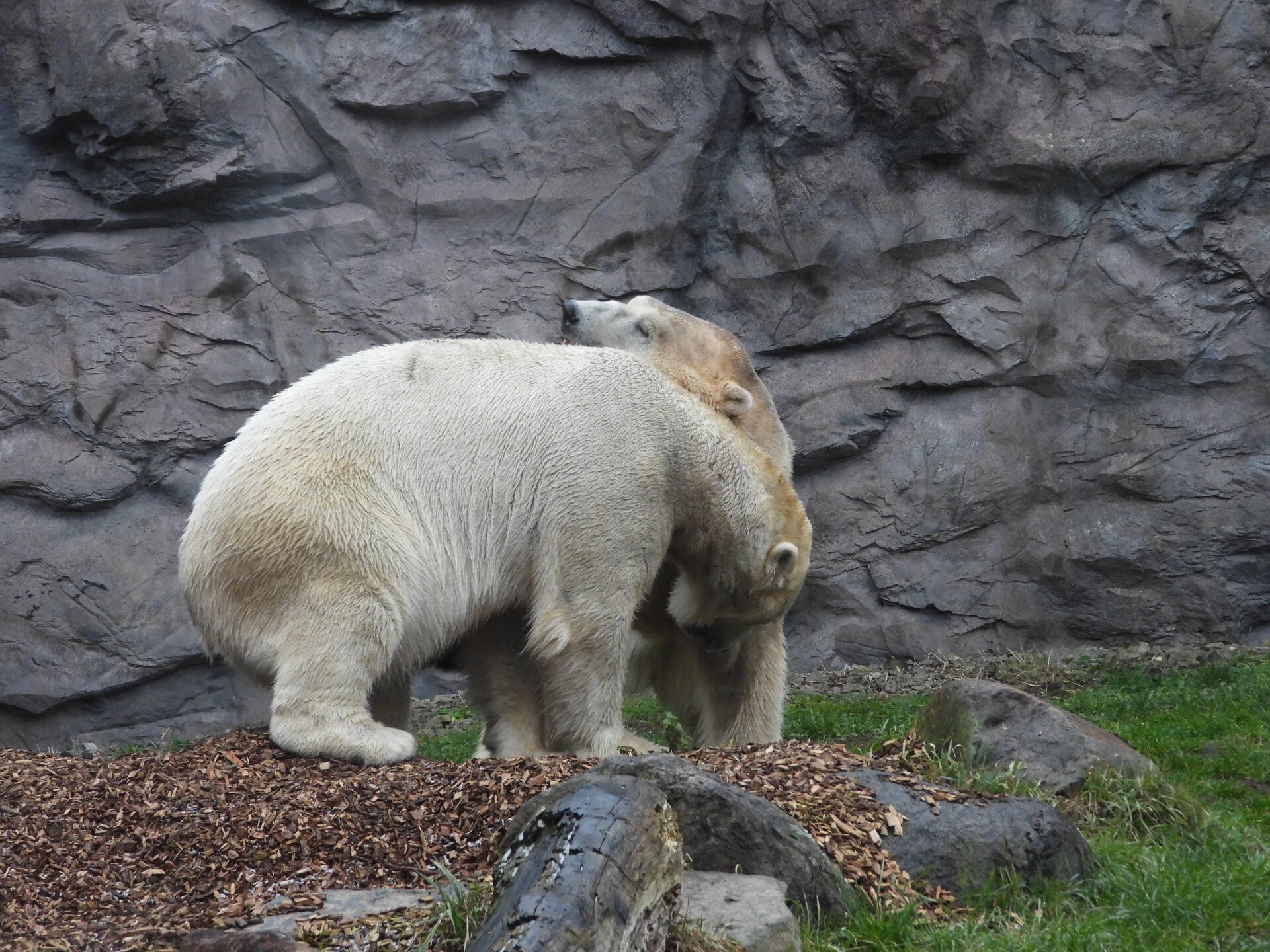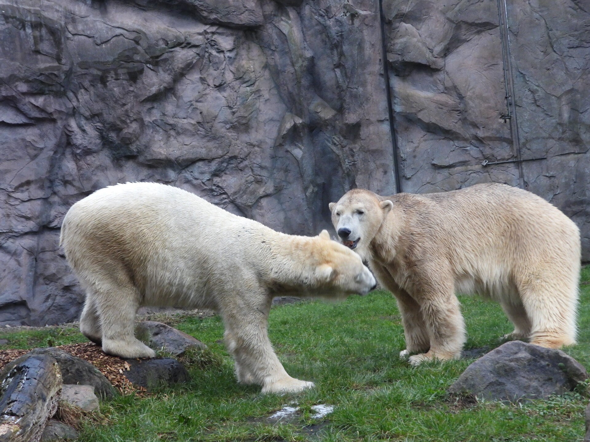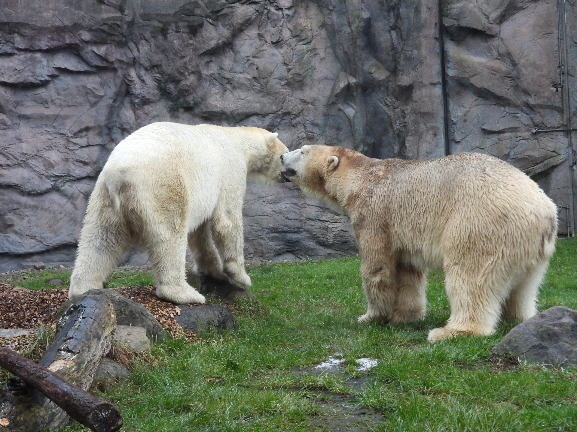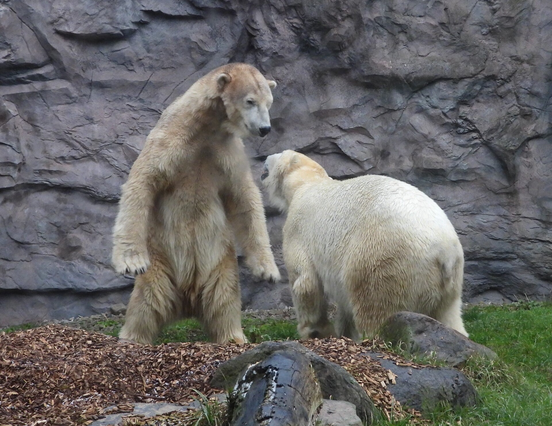 Bill und Nanuq sind nun seit einiger zusammen und benutzen alle drei Anlagen. Sie verstehen sich sehr gut. Mal spielen sie zusammen, aber sie nehmen sich Zeit, sich zurück zu ziehen. Bei der großen Fläche ist das wunderbar möglich.