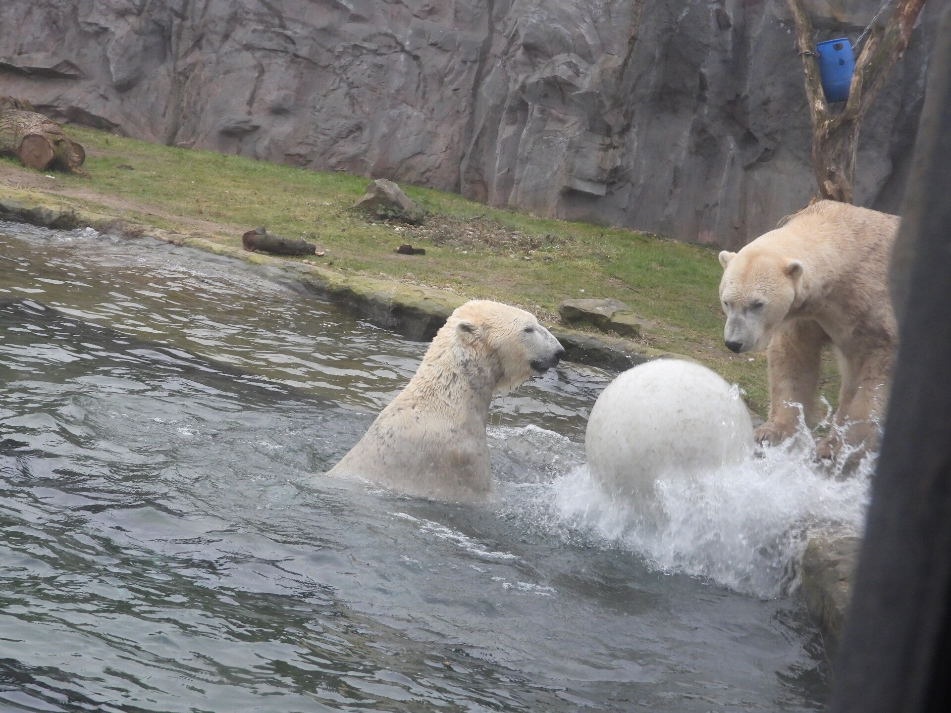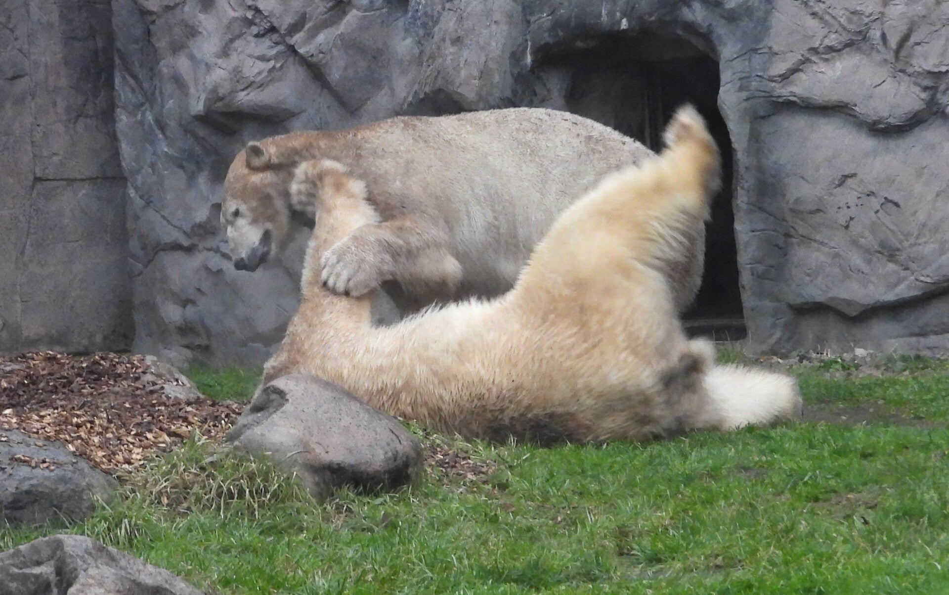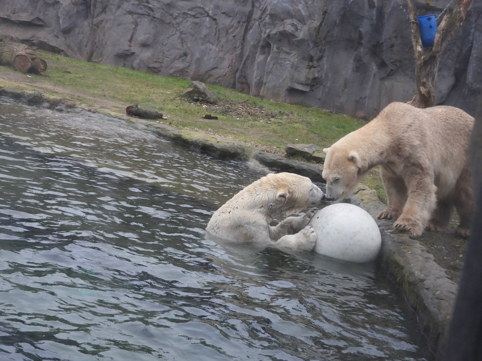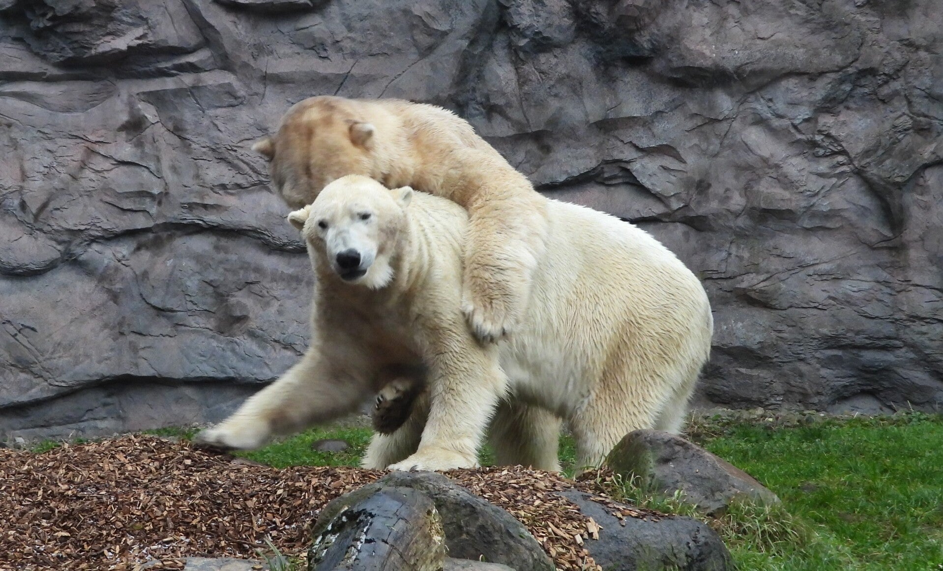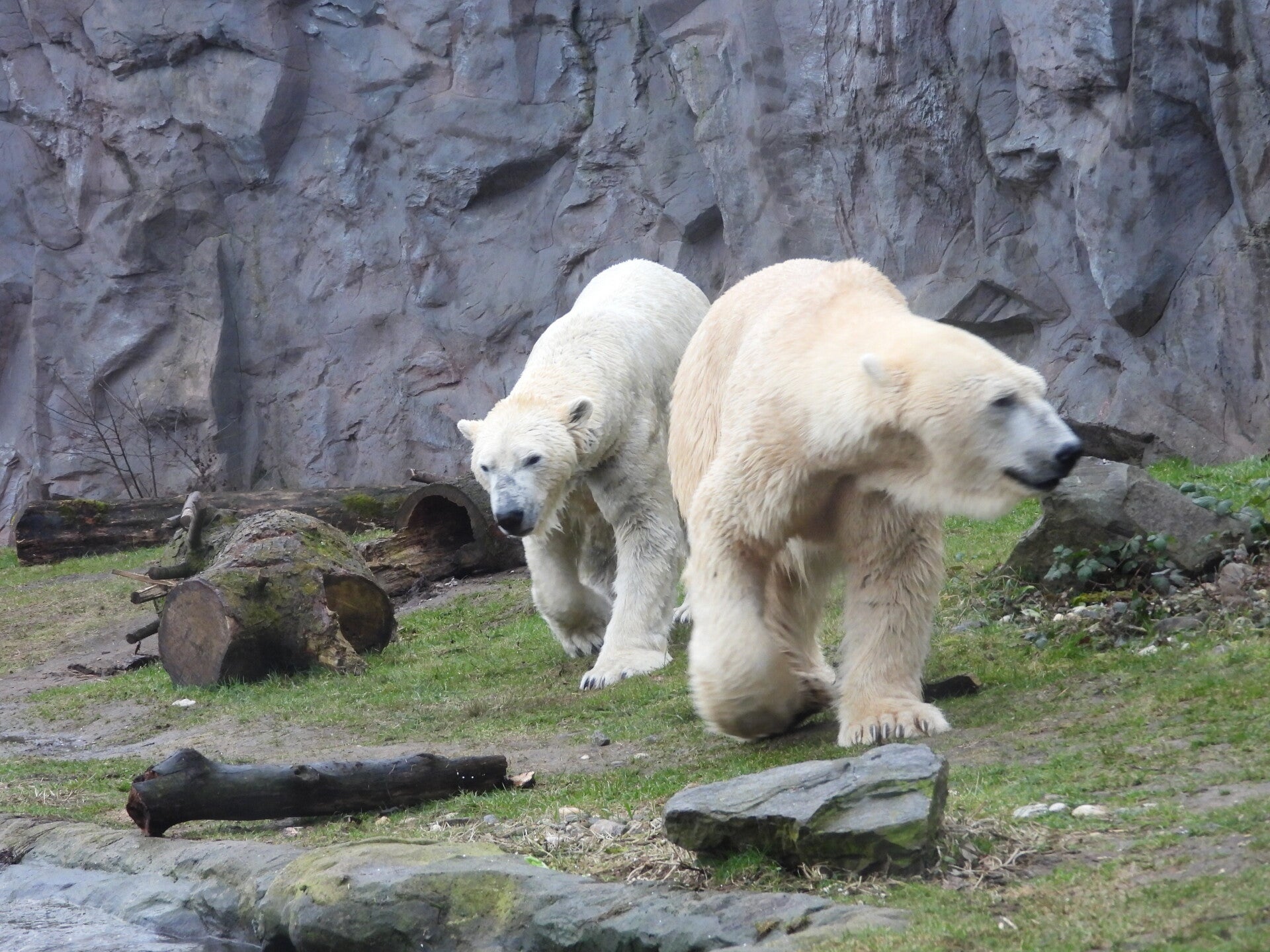 Bill und Nanuq sind nun seit einiger zusammen und benutzen alle drei Anlagen. Sie verstehen sich sehr gut. Mal spielen sie zusammen, aber sie nehmen sich Zeit, sich zurück zu ziehen. Bei der großen Fläche ist das wunderbar möglich.