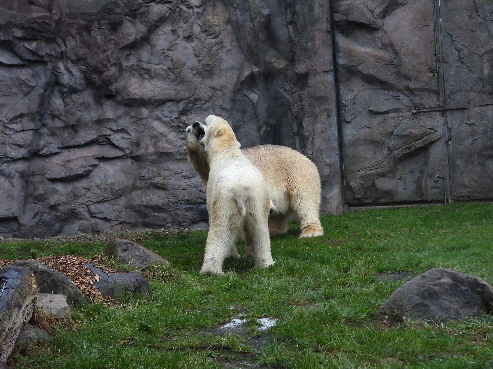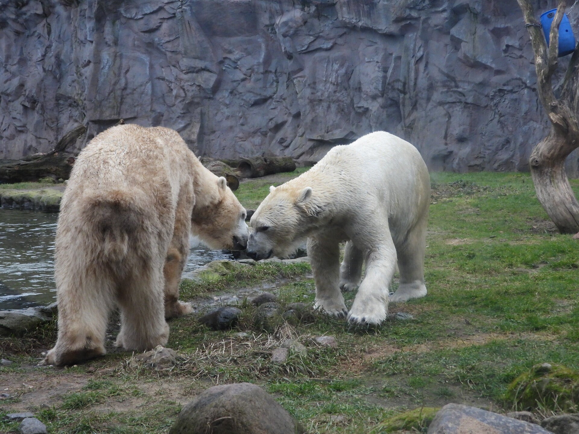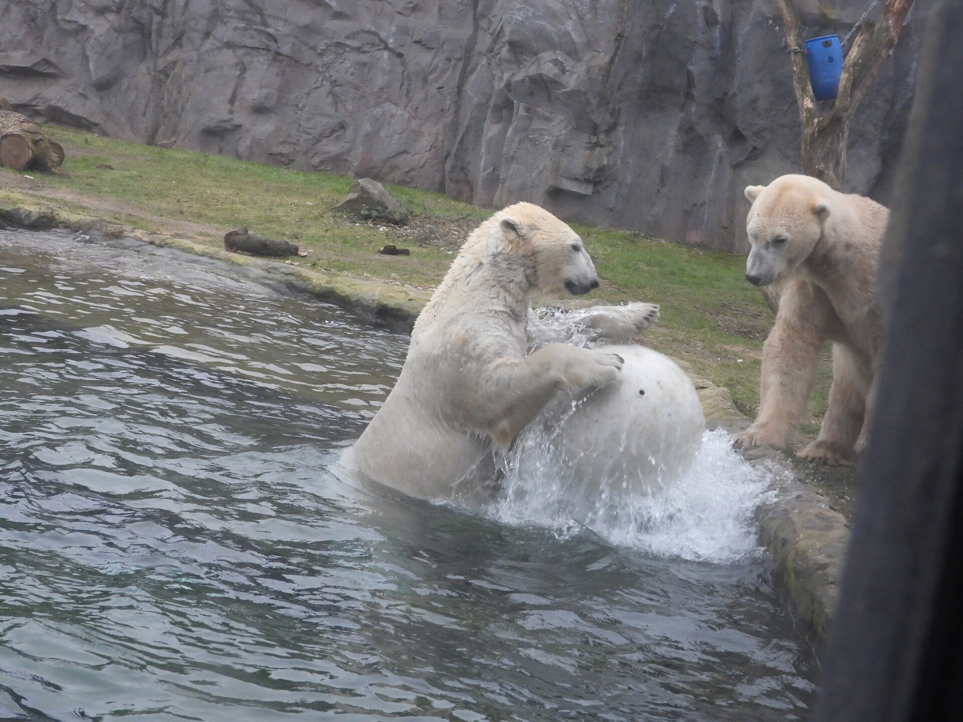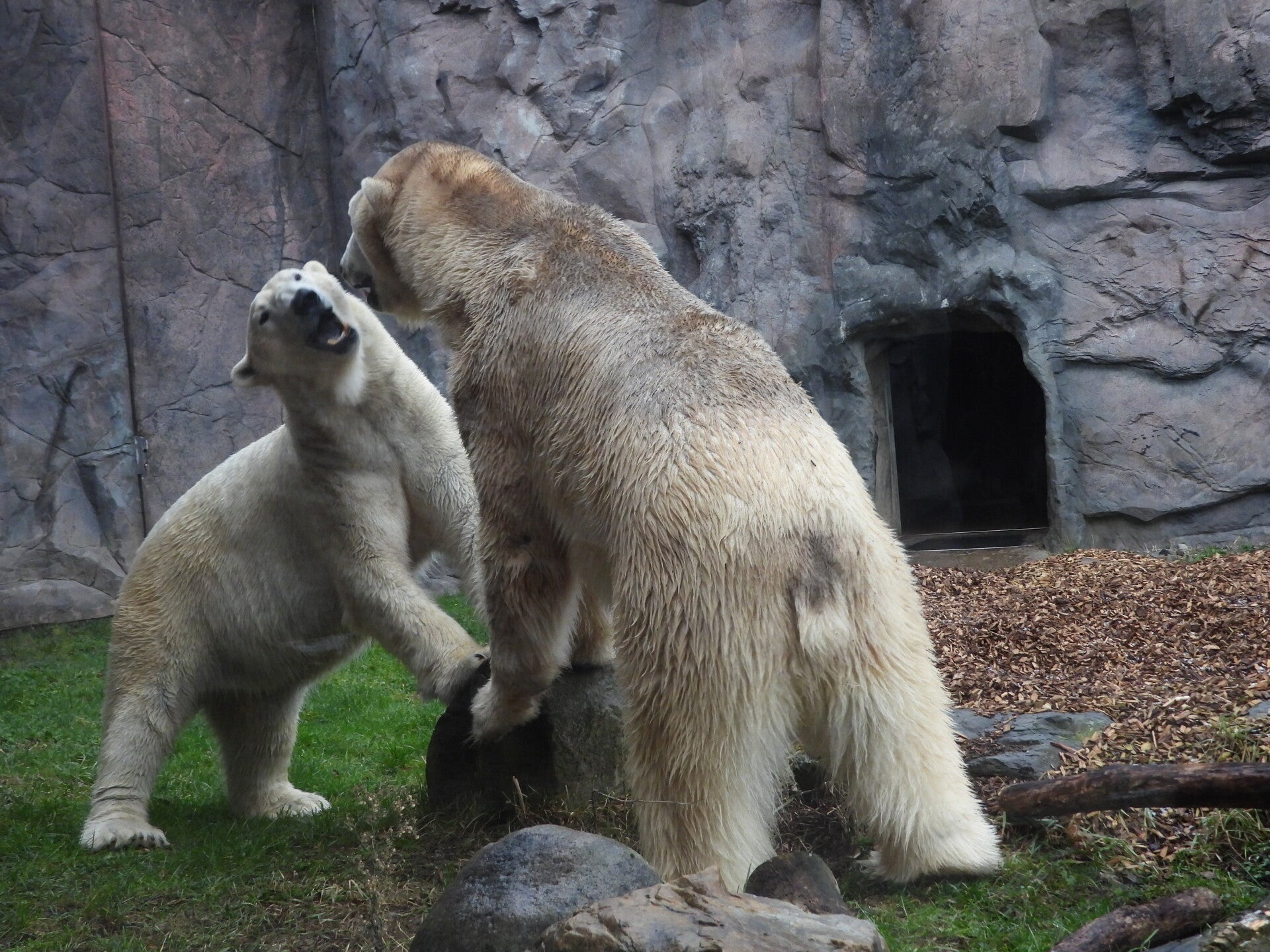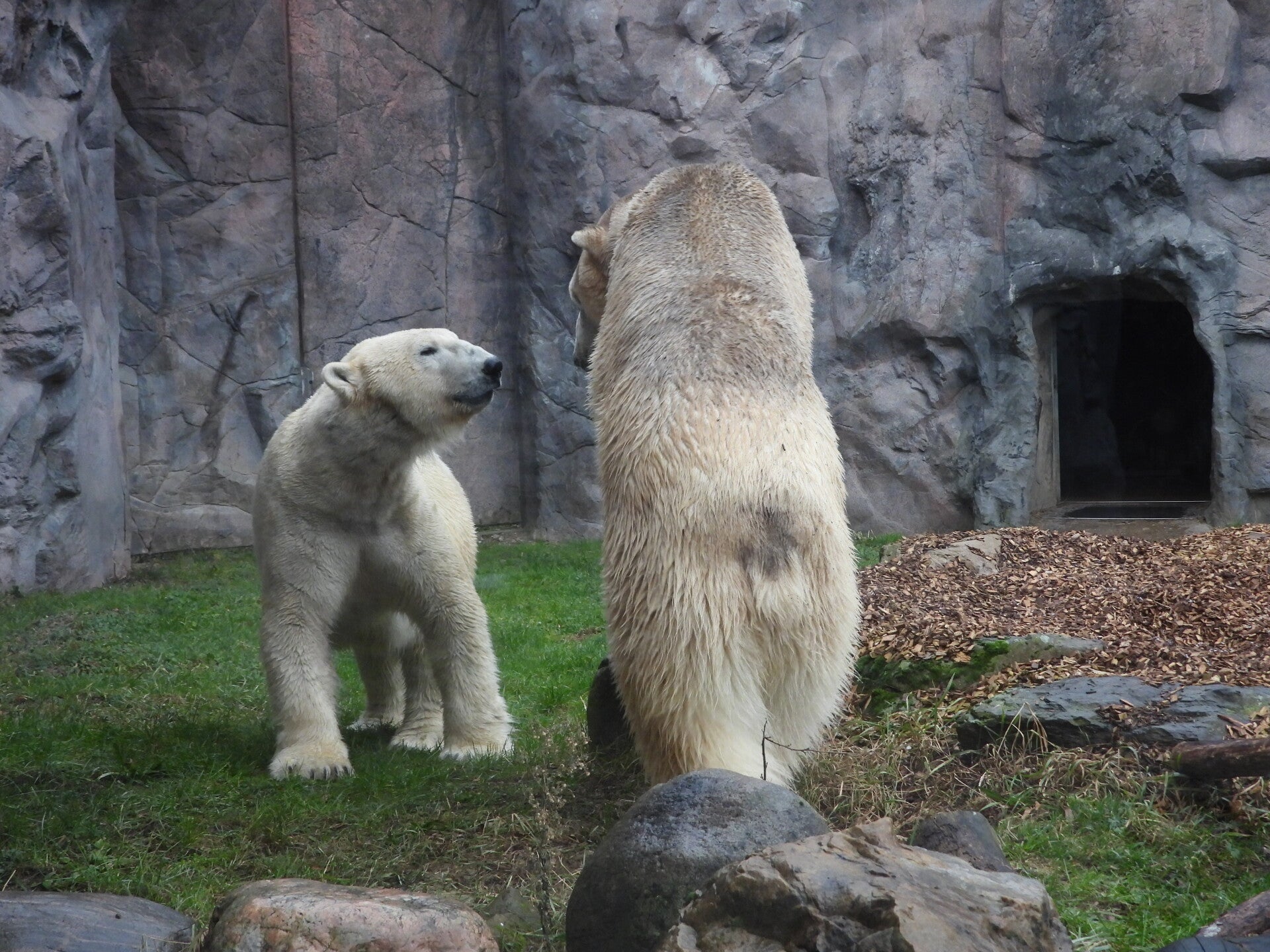 Bill und Nanuq sind nun seit einiger zusammen und benutzen alle drei Anlagen. Sie verstehen sich sehr gut. Mal spielen sie zusammen, aber sie nehmen sich Zeit, sich zurück zu ziehen. Bei der großen Fläche ist das wunderbar möglich.