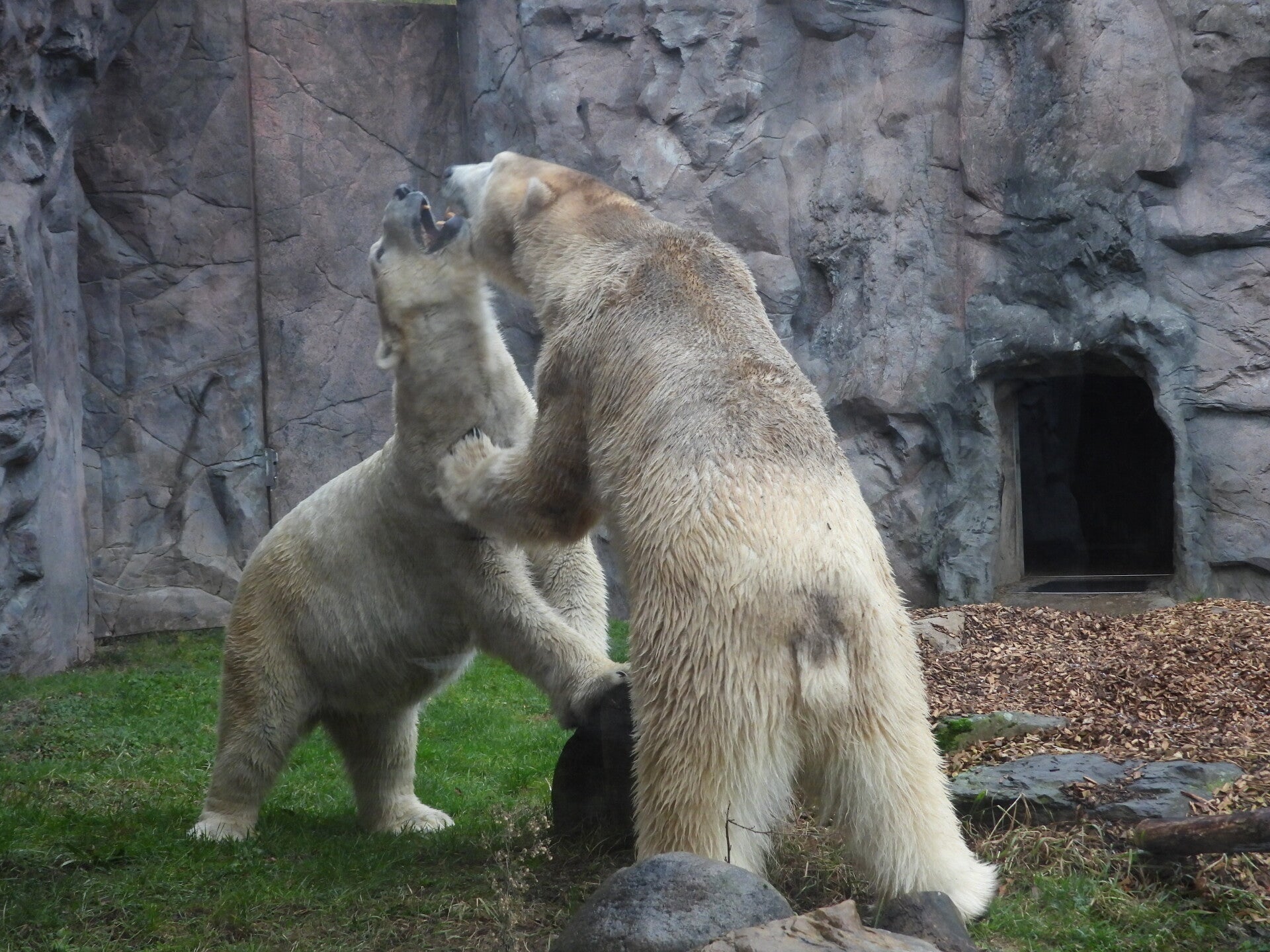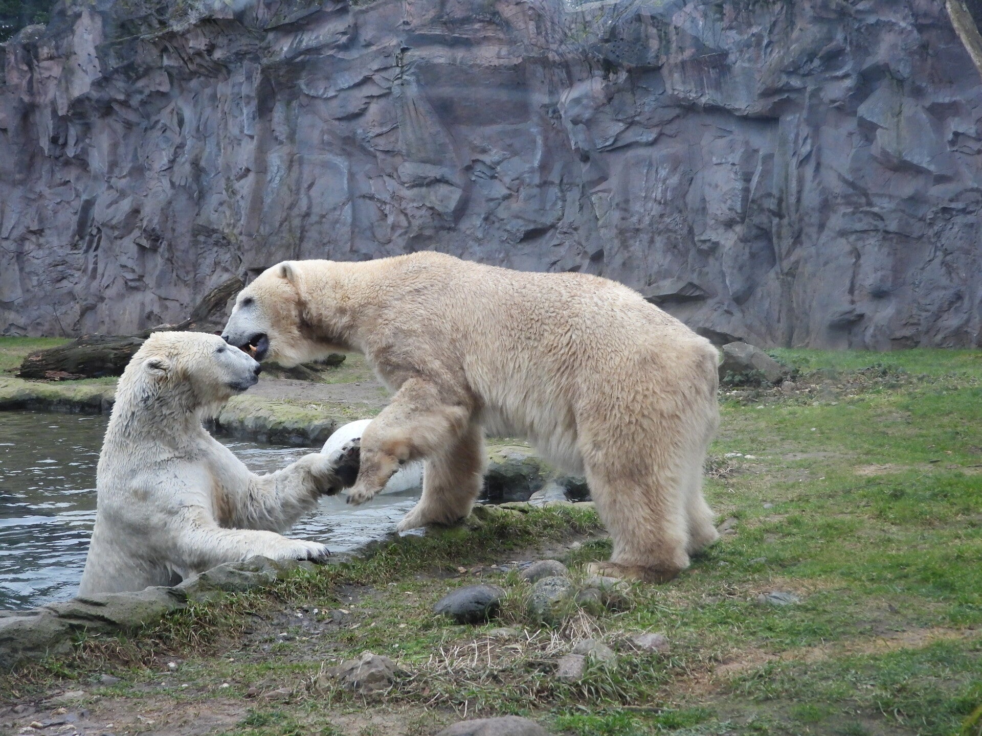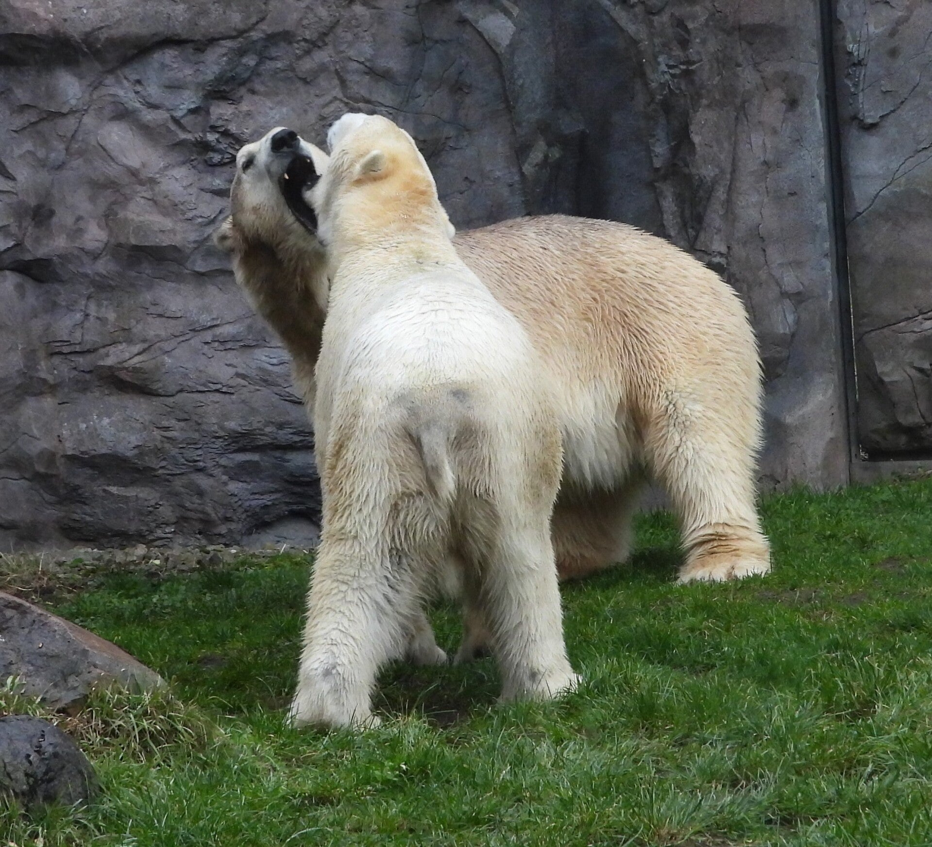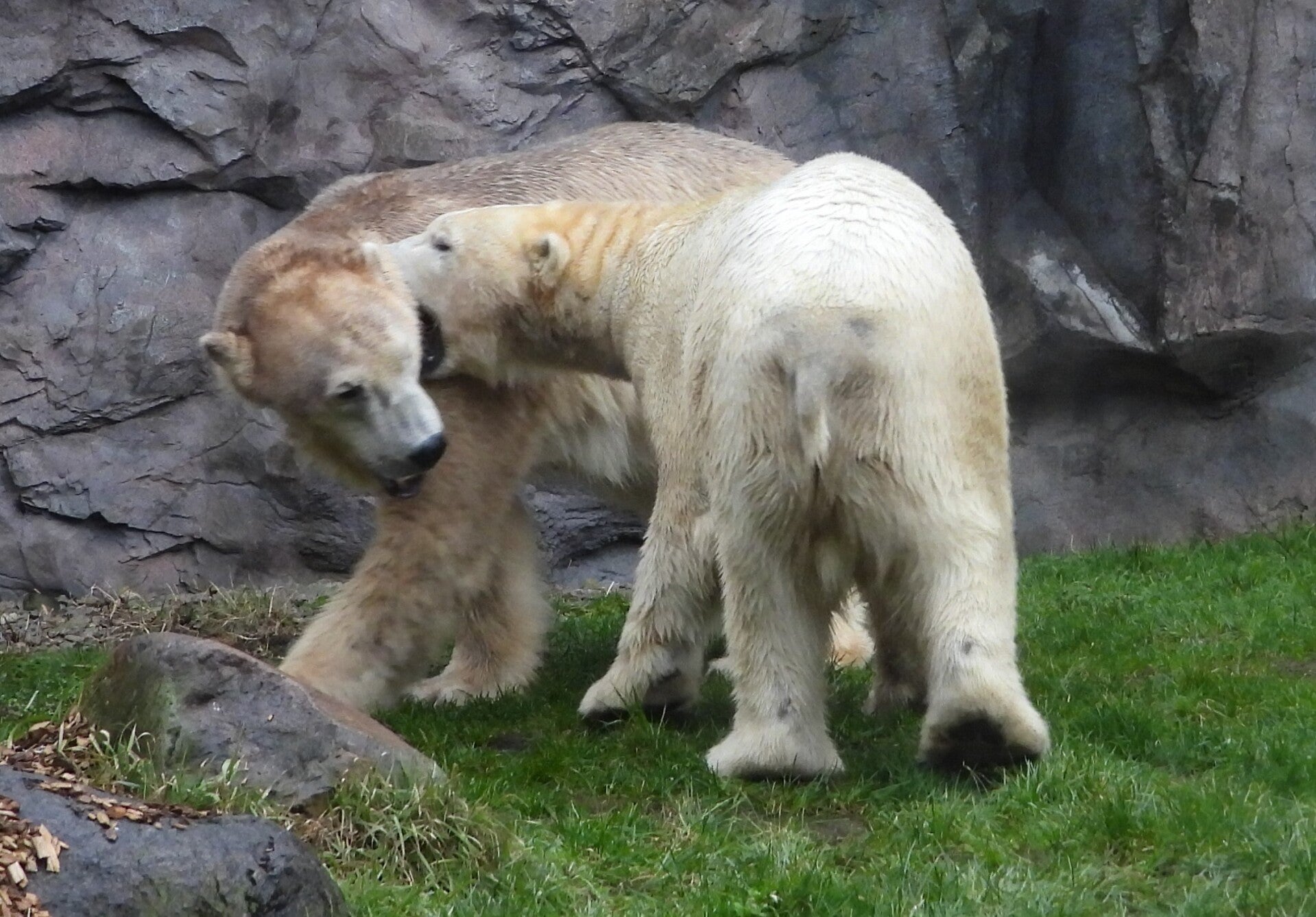 Bill und Nanuq sind nun seit einiger zusammen und benutzen alle drei Anlagen. Sie verstehen sich sehr gut. Mal spielen sie zusammen, aber sie nehmen sich Zeit, sich zurück zu ziehen. Bei der großen Fläche ist das wunderbar möglich.