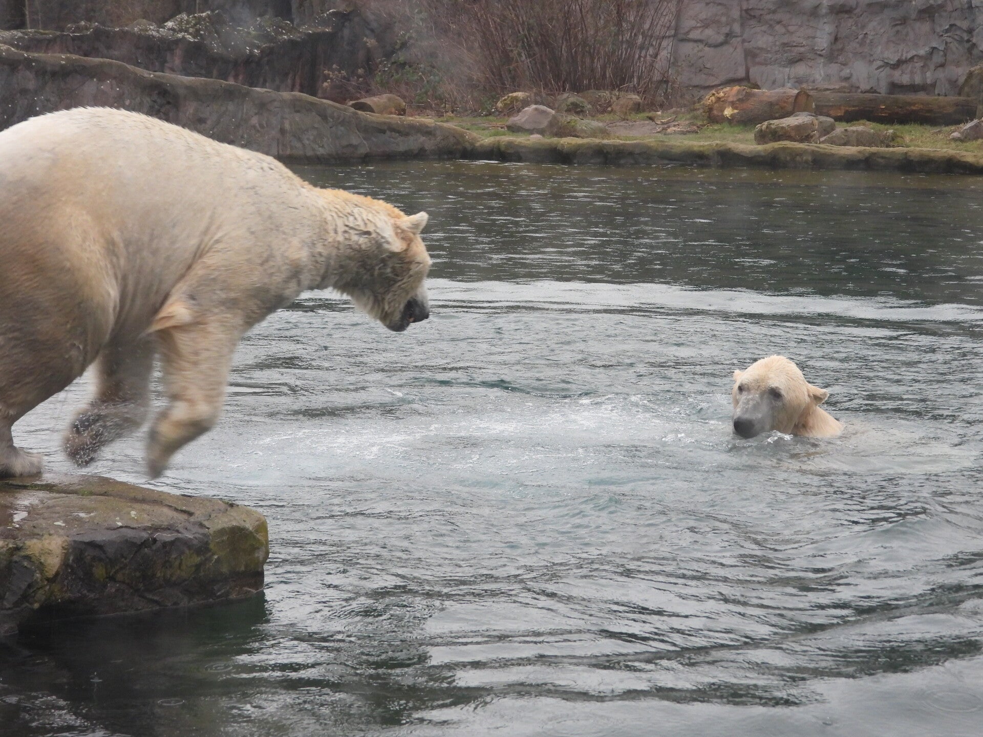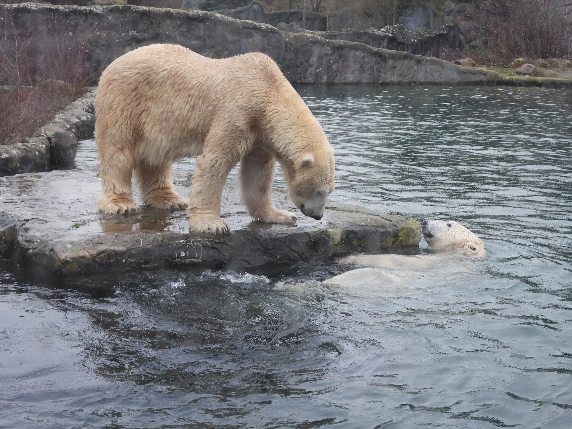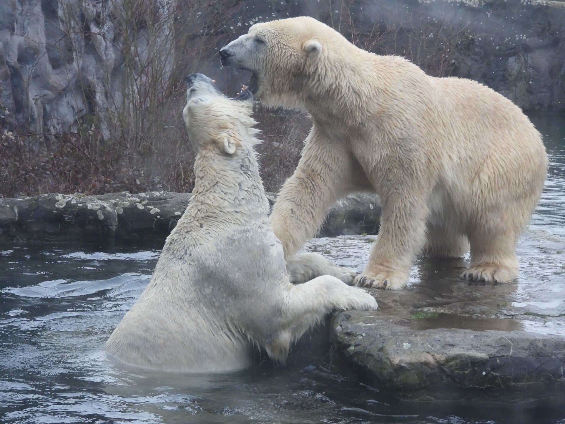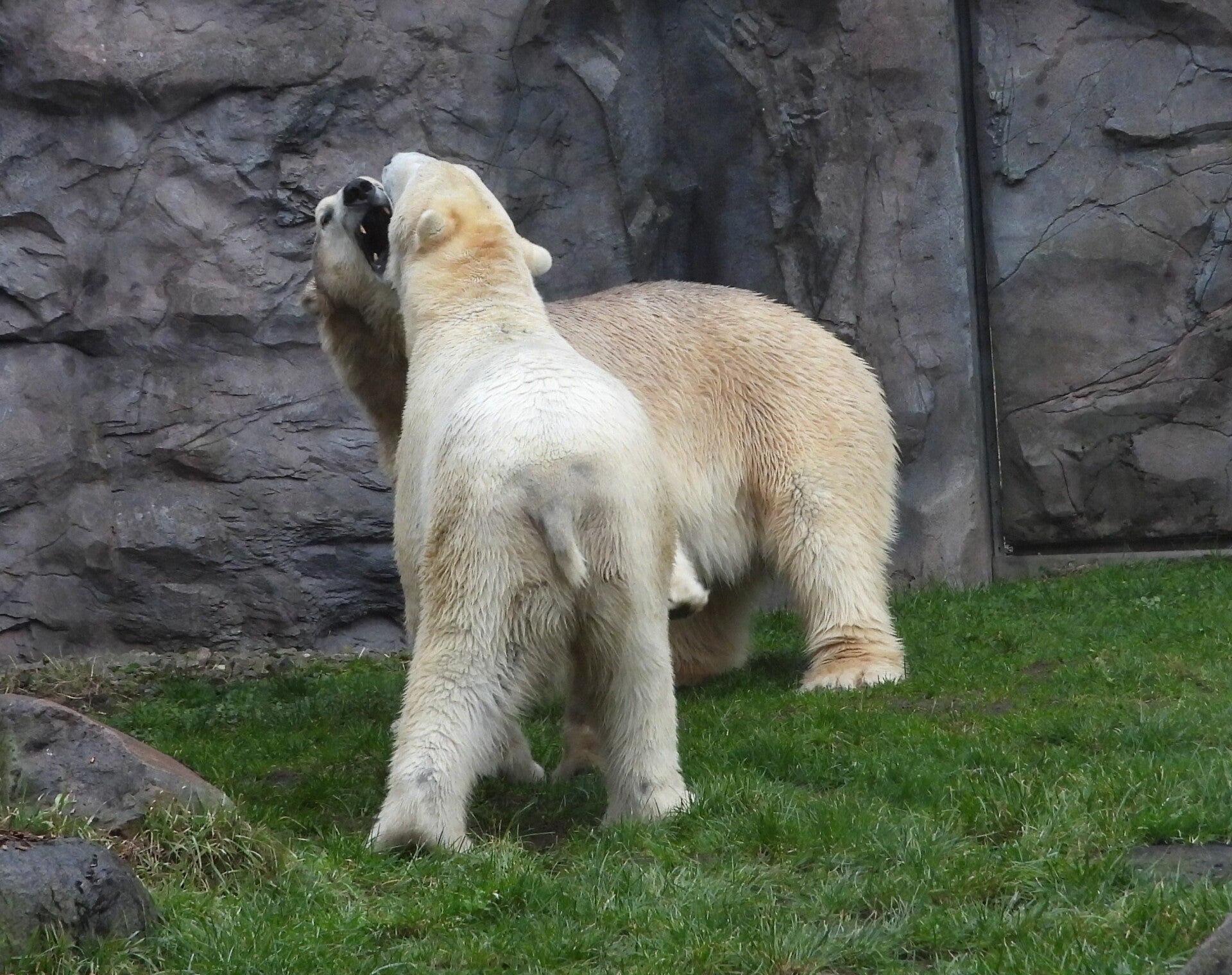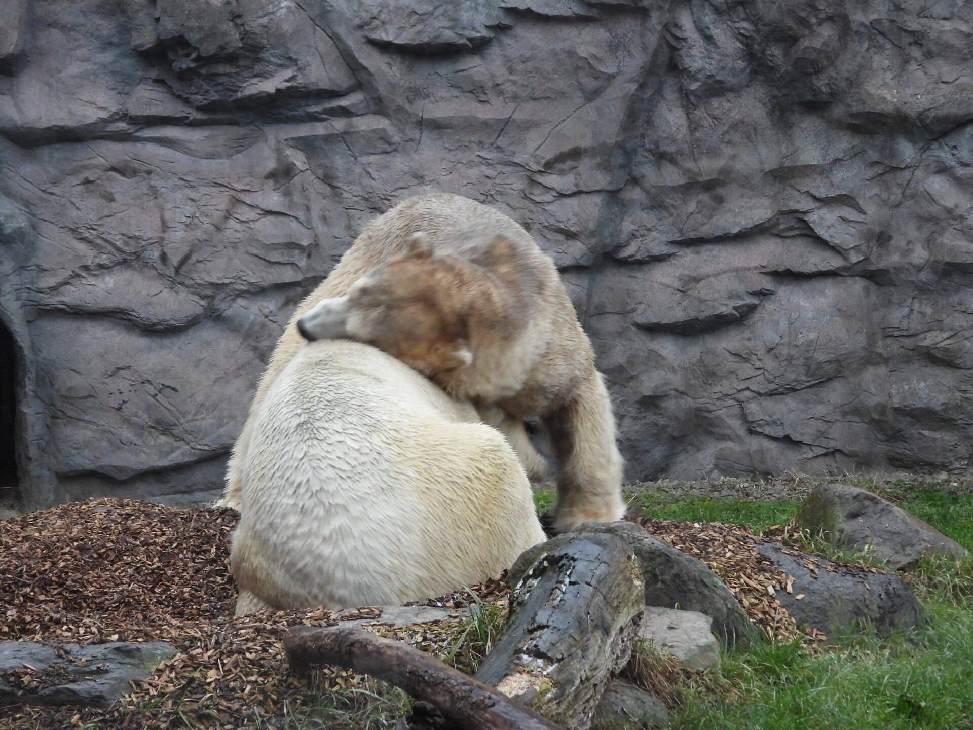 Bill und Nanuq sind nun seit einiger zusammen und benutzen alle drei Anlagen. Sie verstehen sich sehr gut. Mal spielen sie zusammen, aber sie nehmen sich Zeit, sich zurück zu ziehen. Bei der großen Fläche ist das wunderbar möglich.